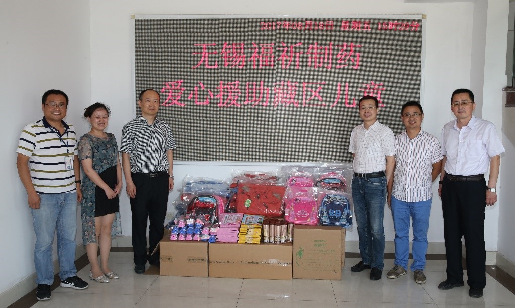 2017年8月18日,無(wú)錫福祈制藥有限公司再次發(fā)起“愛心捐助藏區(qū)兒童”公益活動(dòng),公司員工踴躍參與。開學(xué)季即將到來(lái),本次捐贈(zèng)物品包括書包、文具盒等學(xué)習(xí)用品;由于藏區(qū)秋冬季氣候寒冷,我們同時(shí)捐贈(zèng)了羽絨服。希望收到捐贈(zèng)的藏區(qū)兒童能感受到來(lái)自遙遠(yuǎn)內(nèi)地的溫暖和關(guān)愛,在祖國(guó)的同一片藍(lán)天下幸福快樂地成長(zhǎng)!