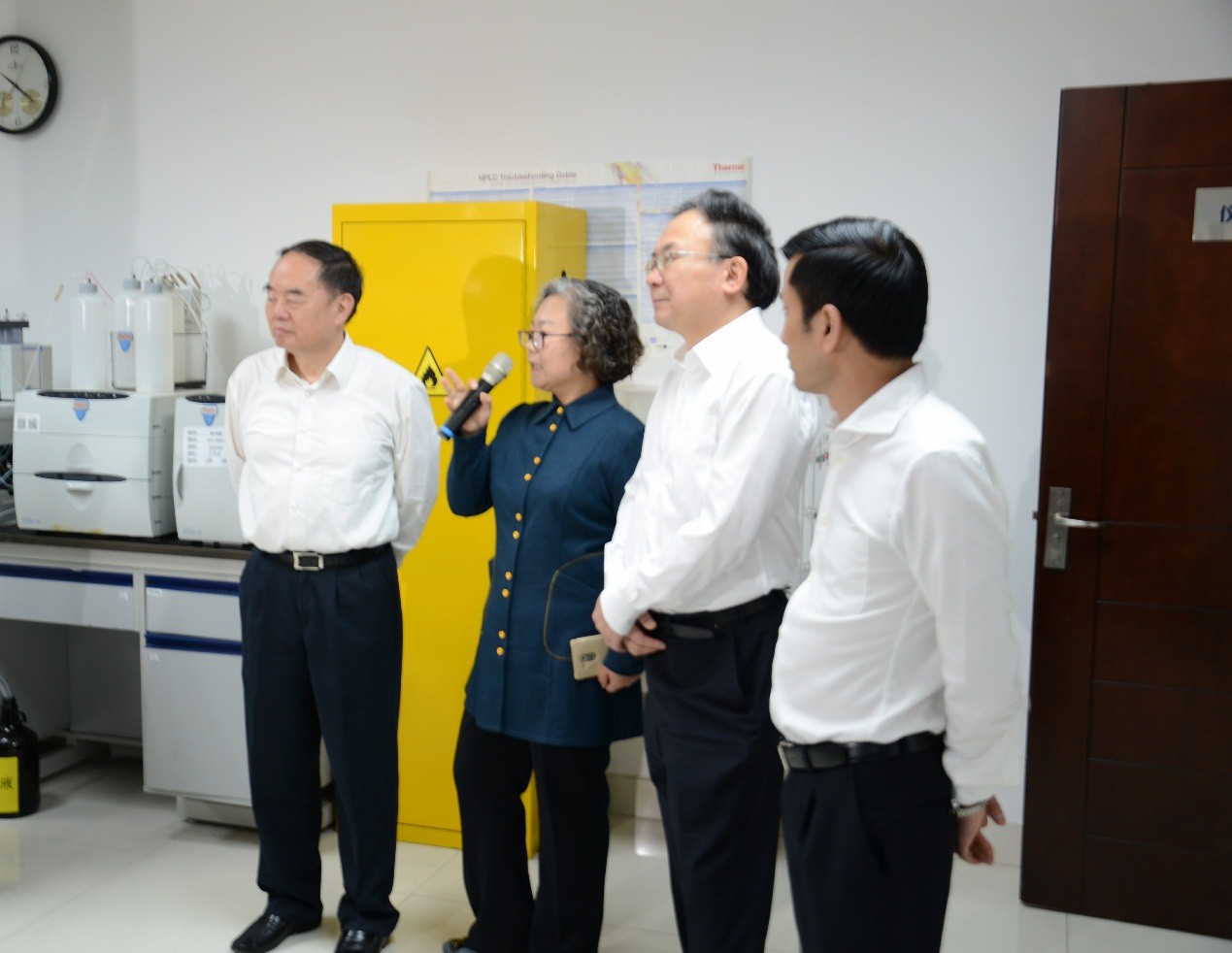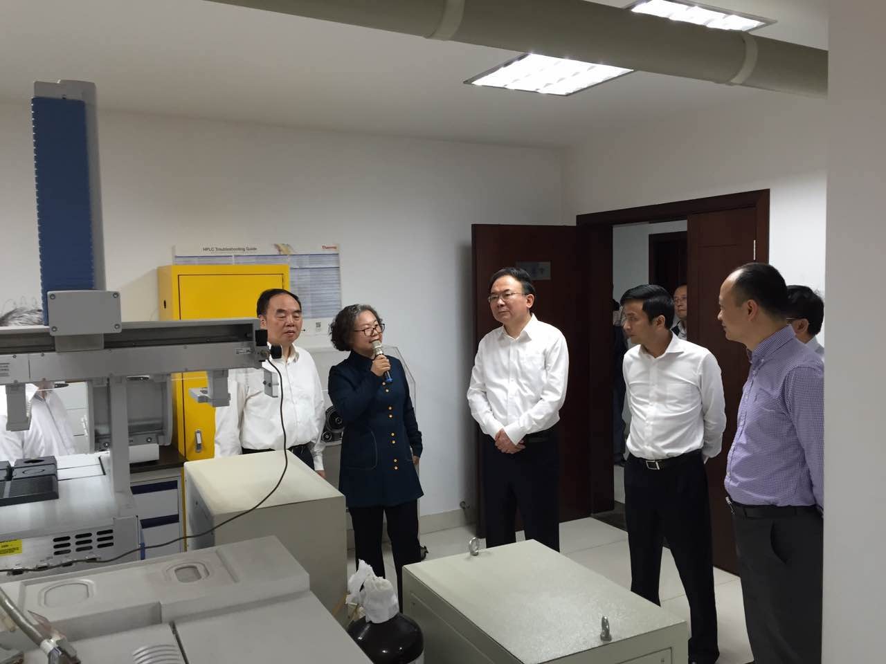 中國(guó)工程院院長(zhǎng)周濟(jì)和無錫市委書記李小敏在徐建國(guó)總經(jīng)理和米靖宇博士陪同下參觀分析檢測(cè)中心。